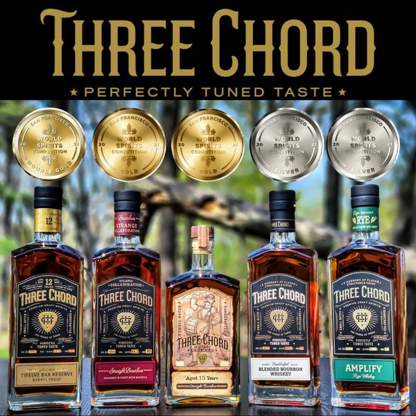 Drier and spicier than most whiskey, Three Chord Amplify Rye offers an array of flavors and aromas not present in bourbon. Three Chord Amplify Rye features the grain-forward (almost grassy) character of young Kentucky rye and more refined, deeper flavors of older Indiana rye.